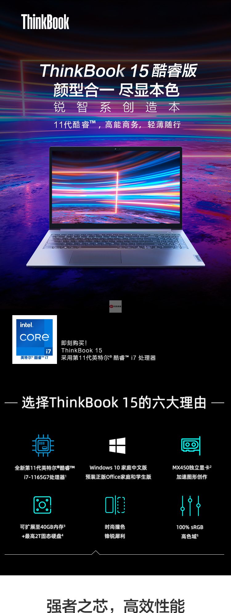 商品名稱:聯(lián)想ThinkBook 15 2021款 酷睿版 英特爾酷睿i7 15.6英寸輕薄筆記本(i7-1165G7 16G 512G MX450獨(dú)顯 高色域)