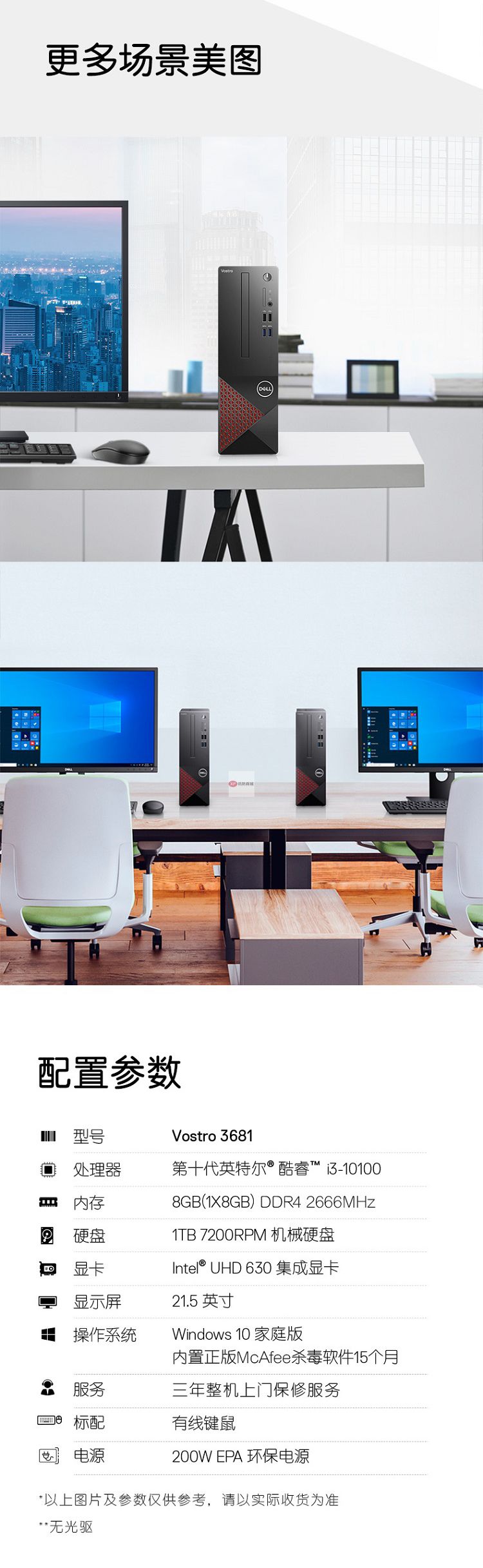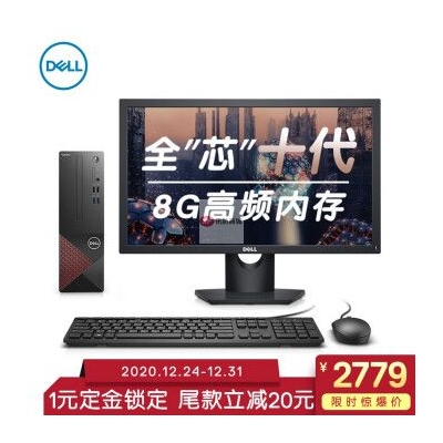 自營戴爾(DELL)成就3681英特爾酷睿i3商用辦公高性能臺式機電腦整機(十代i3-10100 8G 1T 三年上門售后)21.5英寸