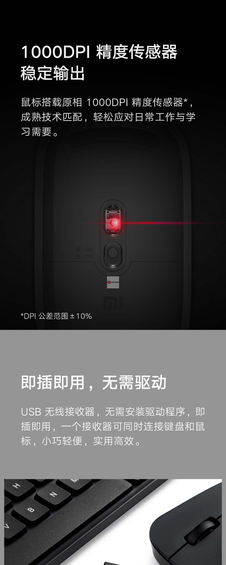商品名稱:小米 無線鍵鼠套裝 簡(jiǎn)潔輕薄 全尺寸104鍵鍵盤 舒適鼠標(biāo) 2.4G無線傳輸 電腦辦公套裝