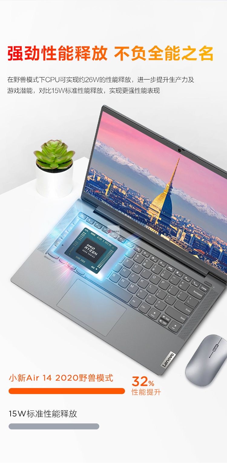 商品名稱:聯(lián)想(Lenovo)小新Air14銳龍版性能輕薄本 14英寸全面屏辦公筆記本電腦(6核R5-4600U 16G 512G 高色域)深空灰