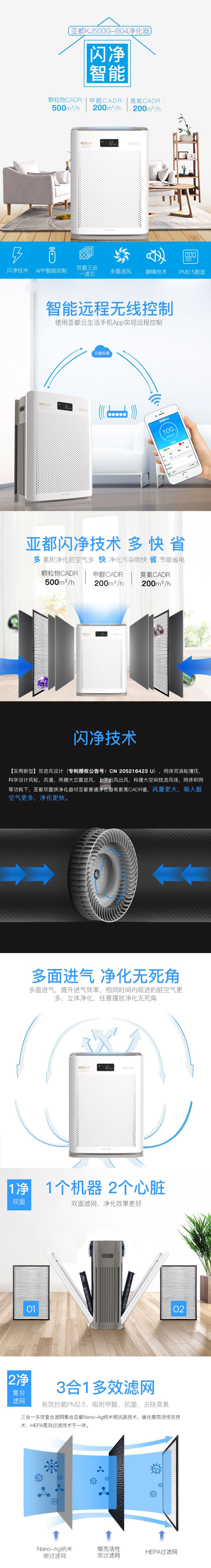 商品名稱:亞都(YADU)KJ500G-B04 空氣凈化器 610*440*260(mm)