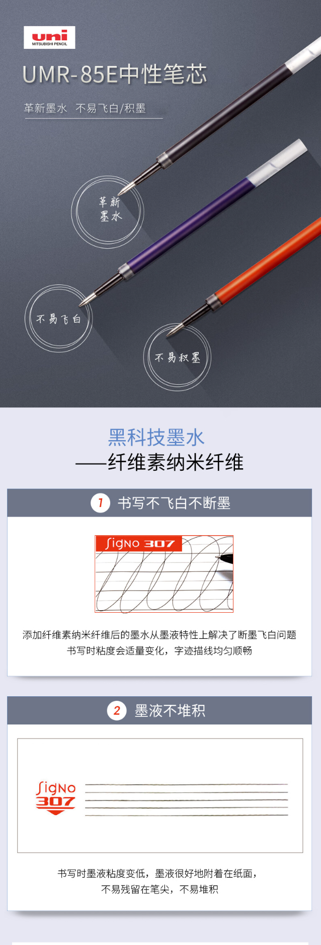 自營三菱中性筆替芯UMR-85E/85N 適用UMN-307/207/152/105/155 0.5mm 紅藍黑 10支盒裝