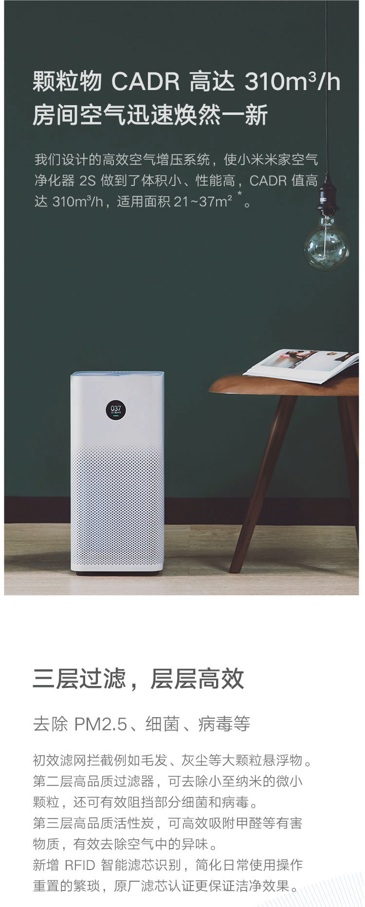 商品名稱:米家 小米空氣凈化器2S 家用除甲醛除煙味PM2.5 靜音設(shè)計 智能互聯(lián) AC-M4-AA 29W