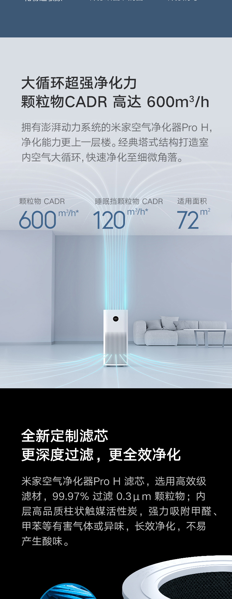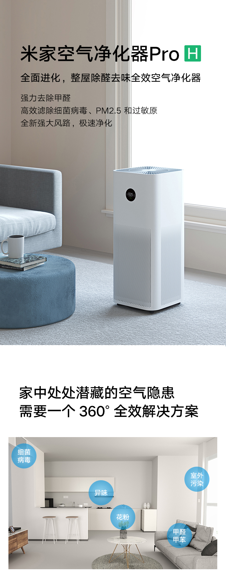 商品名稱:米家 小米空氣凈化器Pro H 家用除甲醛病毒異味二手煙 靜音設(shè)計(jì) 600m3/hAC-M7-SC