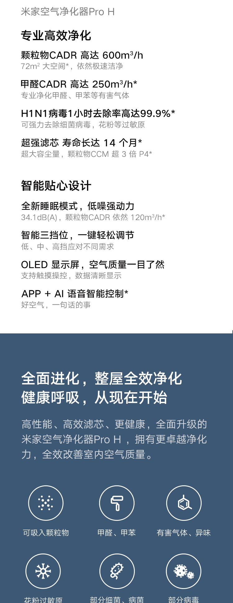 自營米家 小米空氣凈化器Pro H 家用除甲醛病毒異味二手煙 靜音設(shè)計(jì) 600m3/hAC-M7-SC