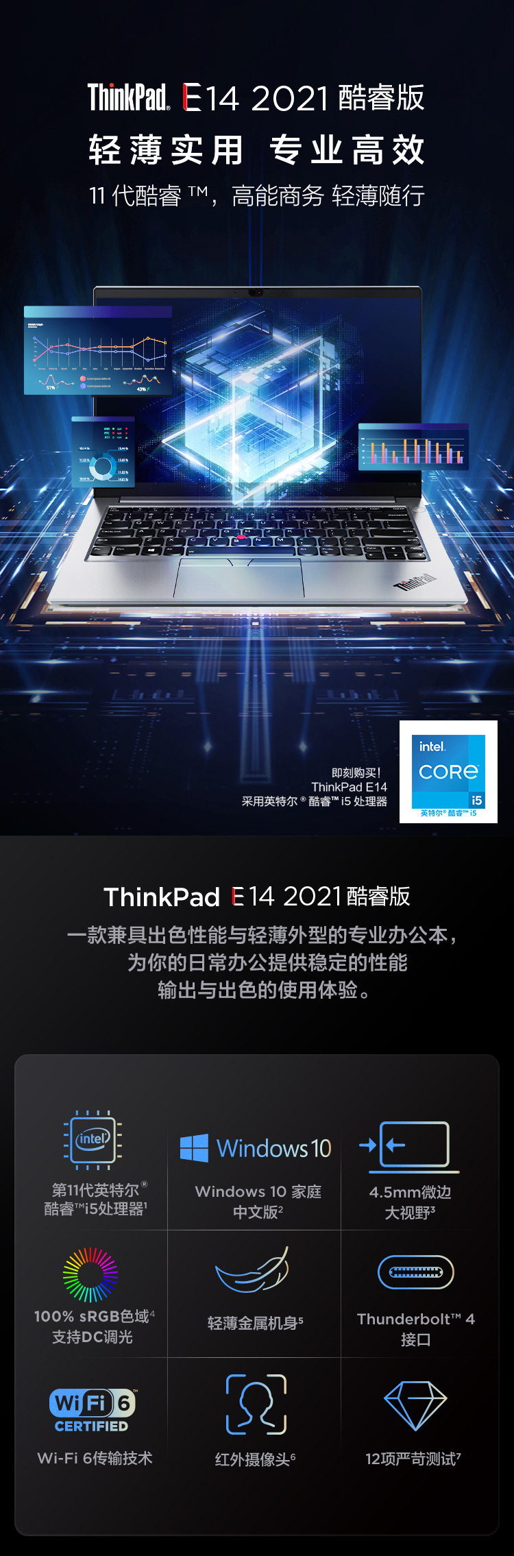 自營聯(lián)想ThinkPad E14 2021 居家辦公本 酷睿版 英特爾酷睿i5 14英寸輕薄筆記本(i5-1135G7 16G 512G 100%sRGB)銀