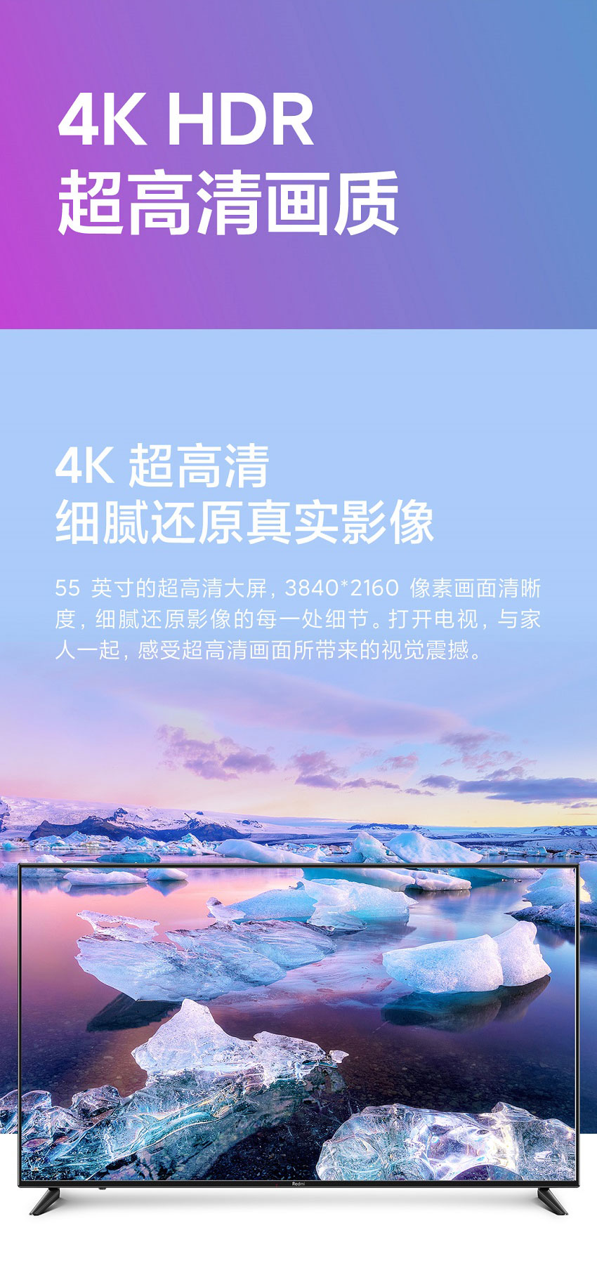 商品名稱:小米(MI)Redmi A55 55英寸4KHDR超高清人工智能網(wǎng)絡液晶教育平板電視紅米 L55R6-A