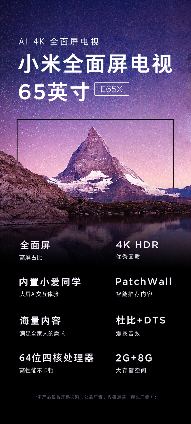 自營(yíng)小米(MI)電視E65X 65英寸 全面屏 4K超高清HDR 藍(lán)牙遙控內(nèi)置小愛(ài) 2 8GB AI人工智能液晶網(wǎng)絡(luò)平板電視 L65M5-EA