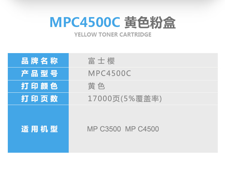 商品名稱:富士櫻(FUSICA)MPC4500C黃色粉盒 適用理光MP C3500 C4500