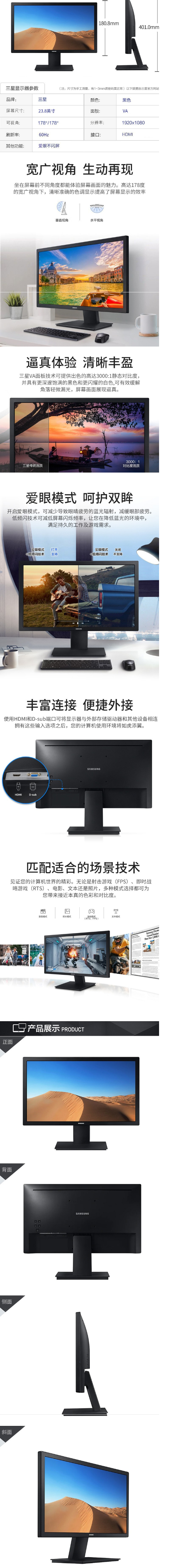 商品名稱:三星(SAMSUNG ) S24D300HLR 23.6英寸 LED背光 HDMI高清接口 電腦顯示器