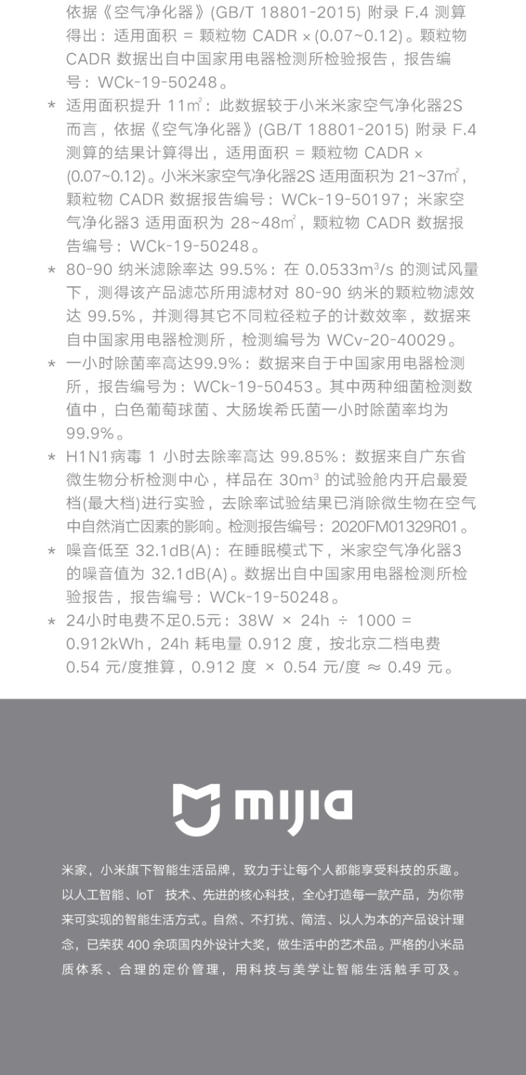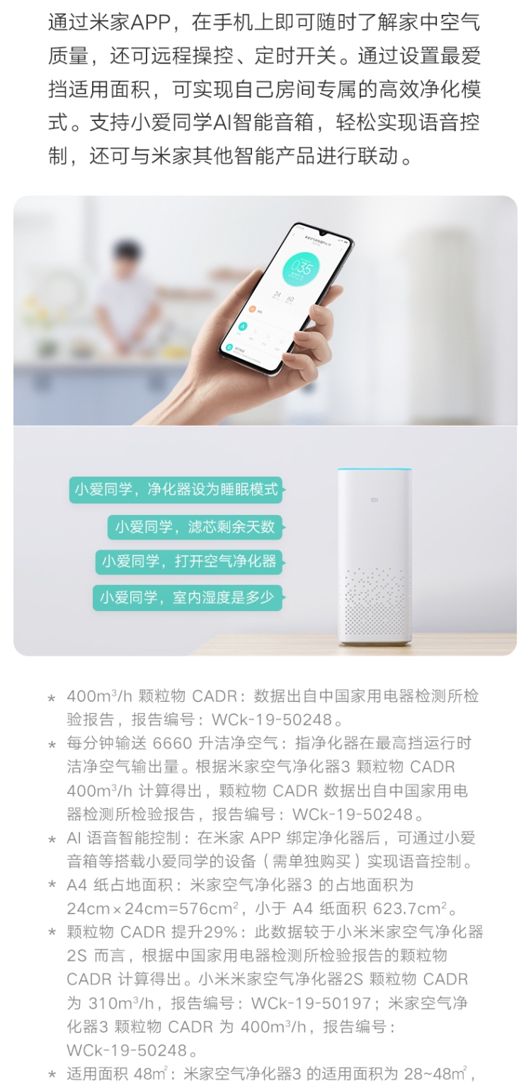 商品名稱:小米(MI)AC-M6-SC 米家空氣凈化器3 400m3/h