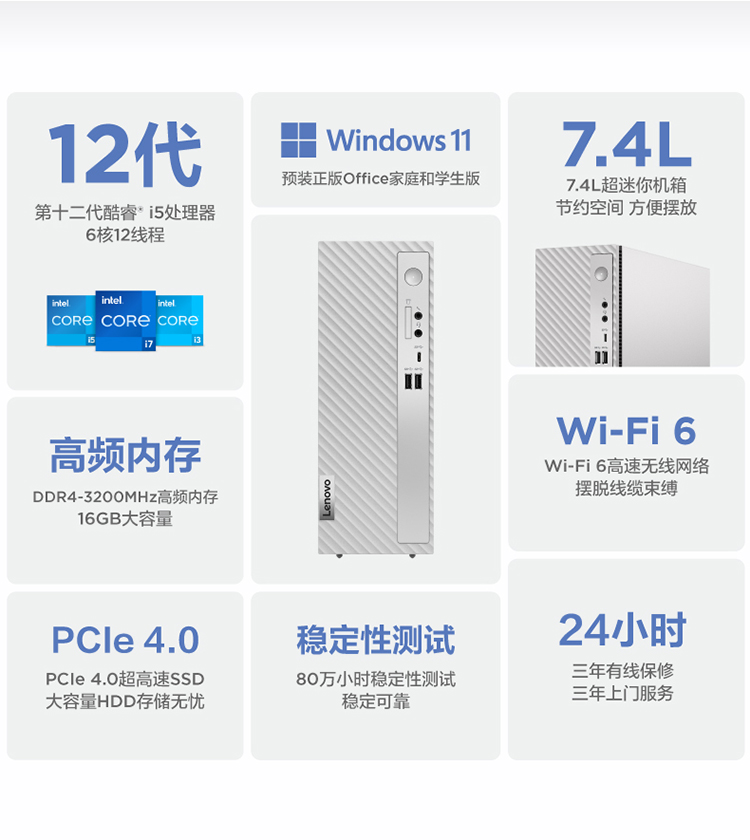 商品名稱:聯(lián)想(Lenovo)天逸510S英特爾酷睿i5個人商務(wù)臺式機電腦整機(12代i5-12400 16G 1T+256G SSDwifi win11)23英寸