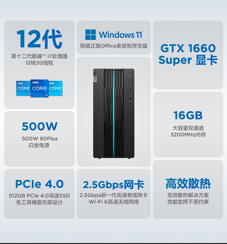 商品名稱:聯(lián)想(Lenovo)GeekPro 2022設(shè)計師游戲臺式電腦主機(jī)(12代i7-12700F GTX1660super 16G 512G SSD )