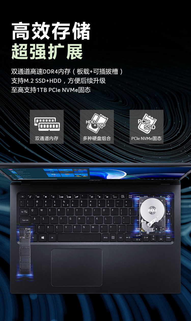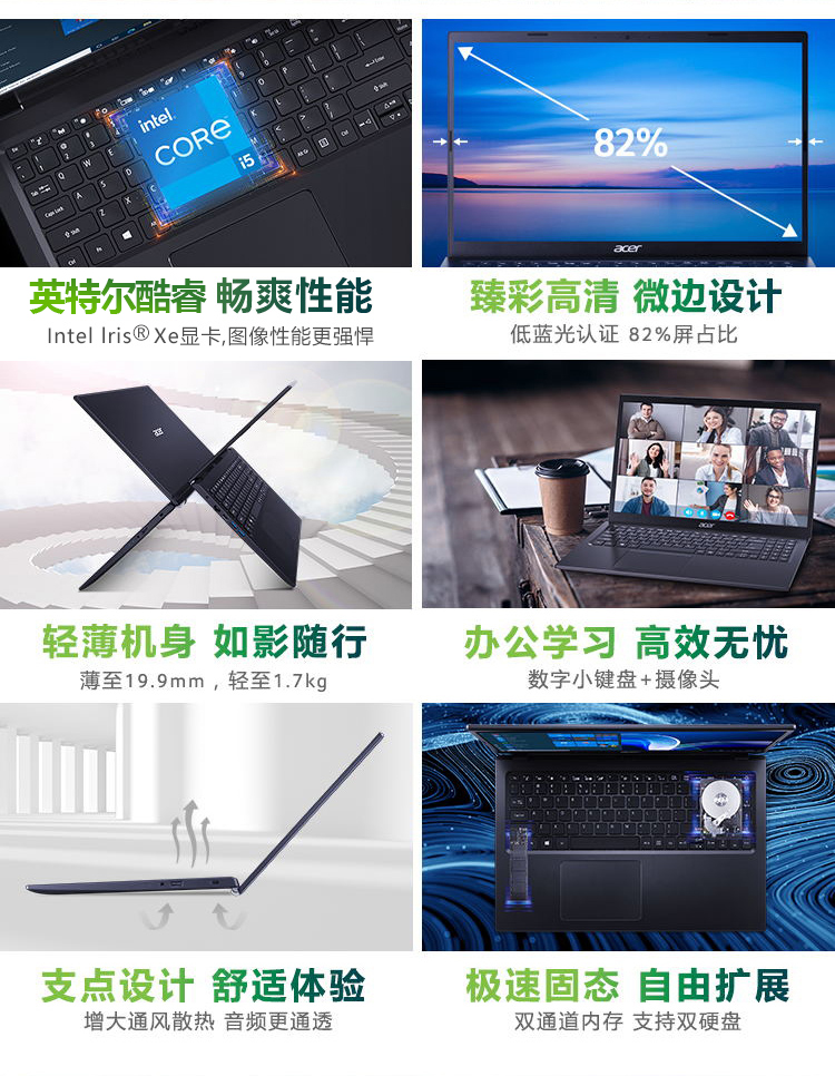 商品名稱:宏碁(Acer)墨舞EX215 15.6英寸輕薄筆記本電腦(酷睿i5 銳炬顯卡 16G 512GSSD 全高清防藍(lán)光 Win11)