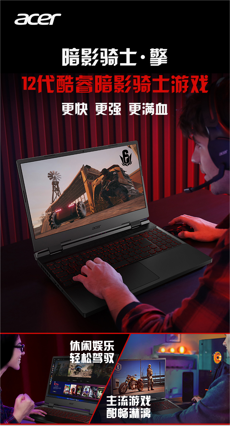 自營宏碁 新暗影騎士·擎 15.6英寸2.5K屏游戲筆記本電腦(12代i7-12700H 16G 512G RTX3060滿血 165Hz 100%DCI-P3)