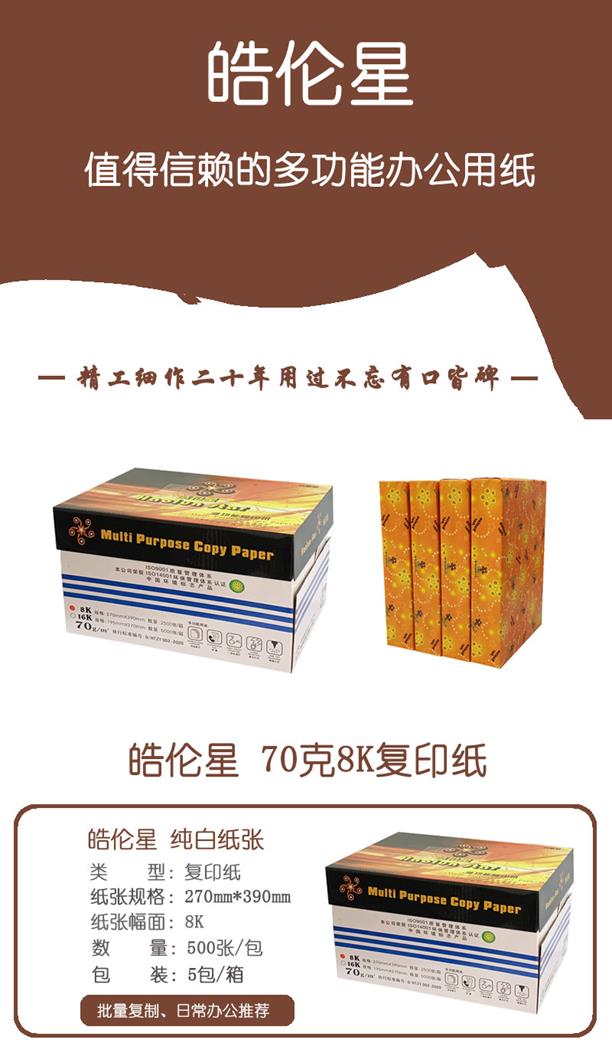 自營(yíng)皓倫星 70克8K 復(fù)印紙 5包/箱 500張/包(單價(jià) 元/箱)廠(chǎng)家直銷(xiāo)