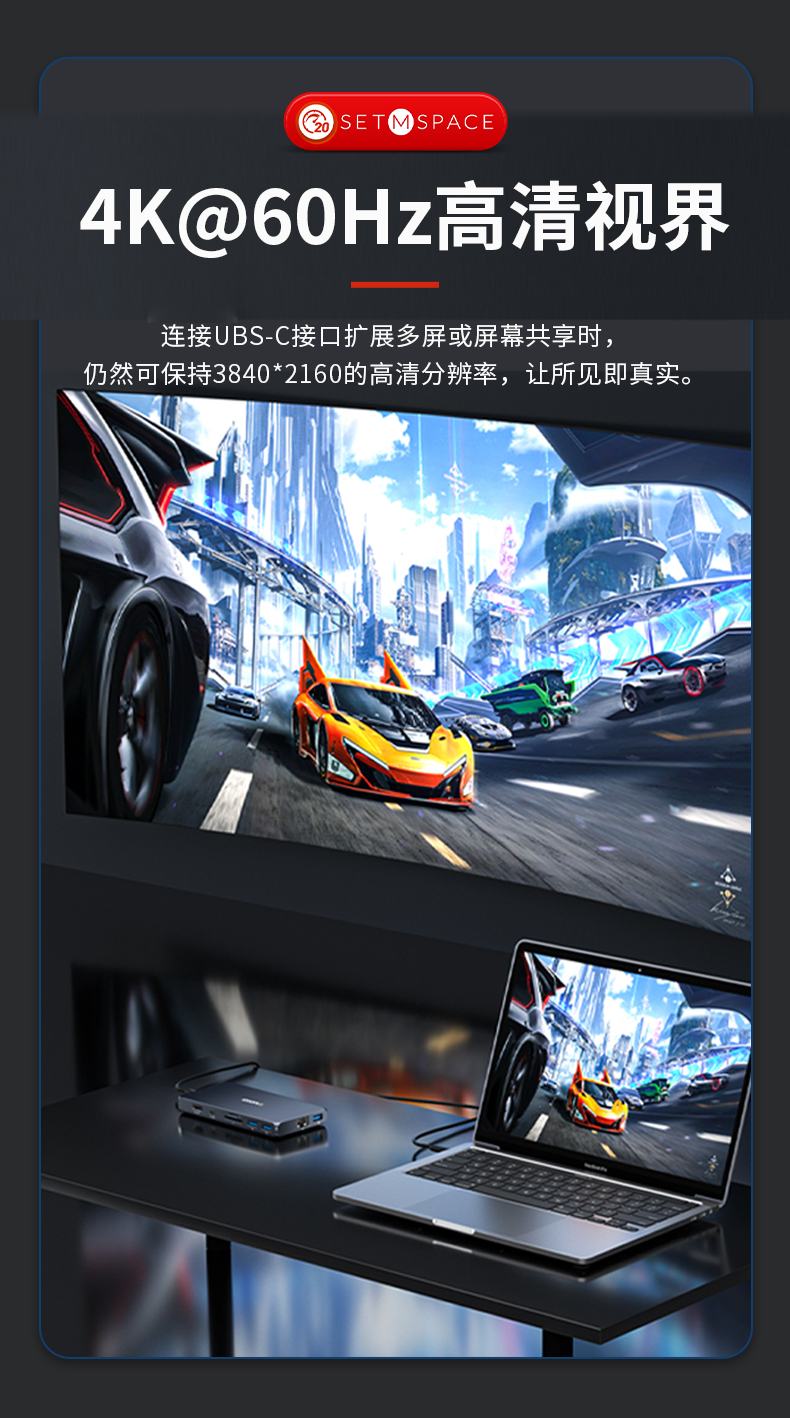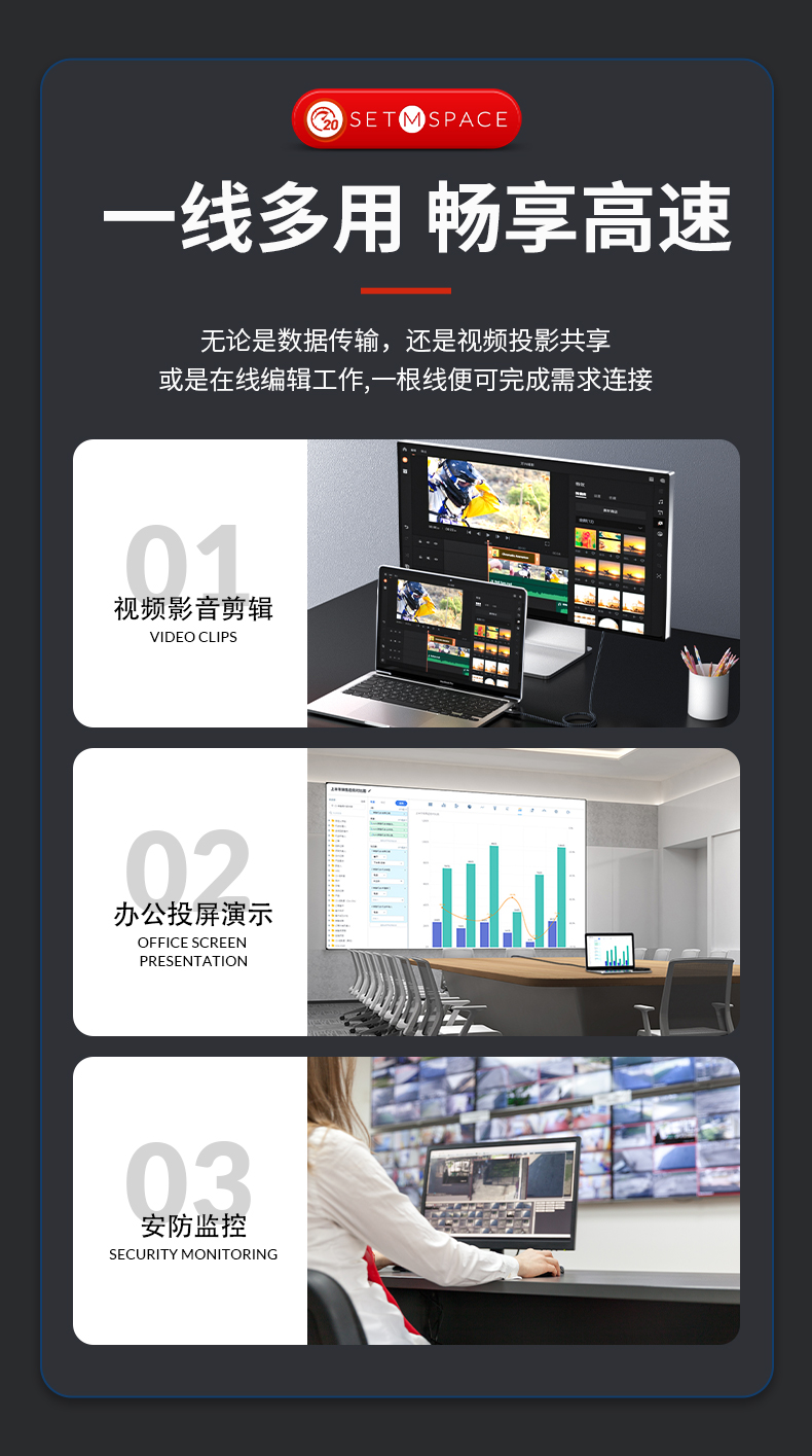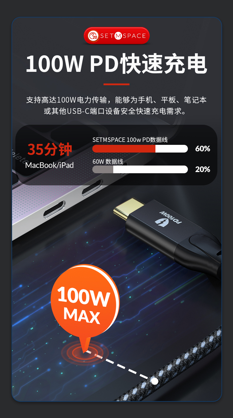 自營(yíng)SETMSPACE (合金桌面)USB3.2Gen2*2全功能type-c數(shù)據(jù)線顯示器視頻連接線快充 20Gbps USB3.2 C直-C直 線長(zhǎng)0.5m