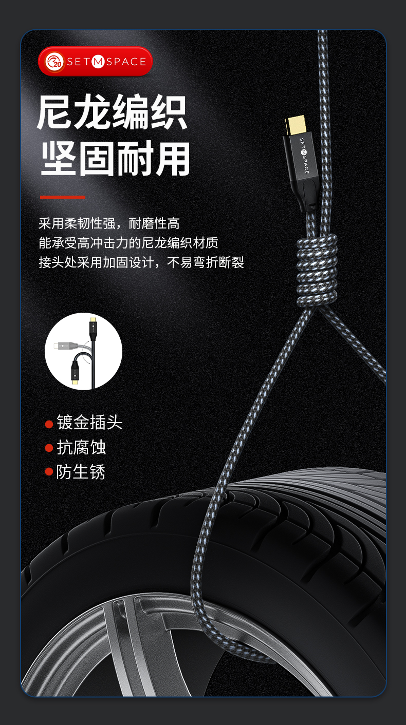 商品名稱:SETMSPACE (合金桌面)USB3.2Gen2*2全功能type-c數(shù)據(jù)線顯示器視頻連接線快充 20Gbps USB3.2 C直-C直 線長(zhǎng)0.5m