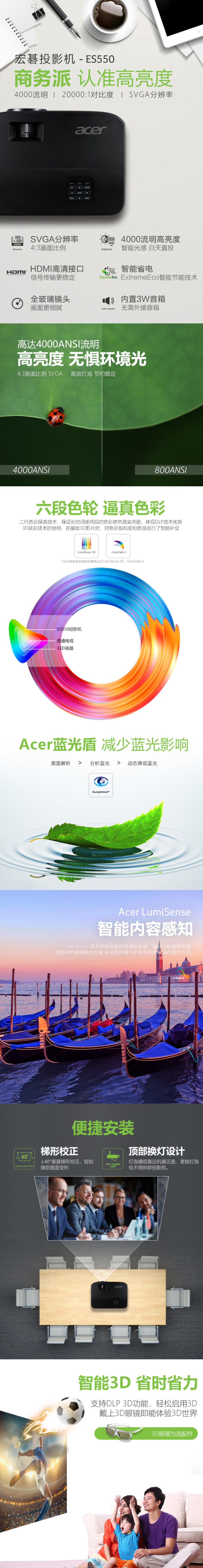 商品名稱:宏碁(Acer)ES550 投影儀投影機 商務(wù)辦公(普清 4000流明 0.55