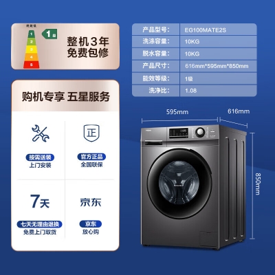 商品名稱:海爾(Haier)滾筒洗衣機全自動家電 BLDC變頻電機 10公斤大容量 雙重殺菌99% EG100MATE2S