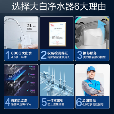 商品名稱:美的(Midea) 凈水器機(jī)家用廚房下直濾飲水前置過超濾器機(jī)無罐MU135B-4