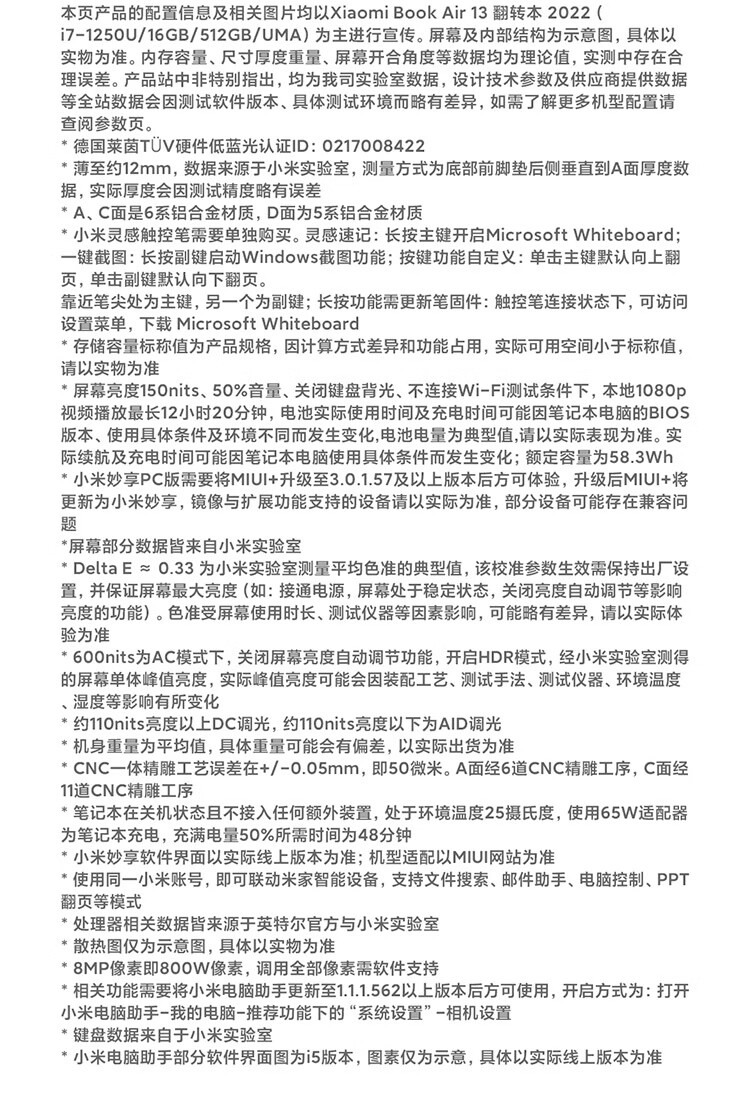 • 認(rèn)證型號(hào):Xiaomi Book Air 13