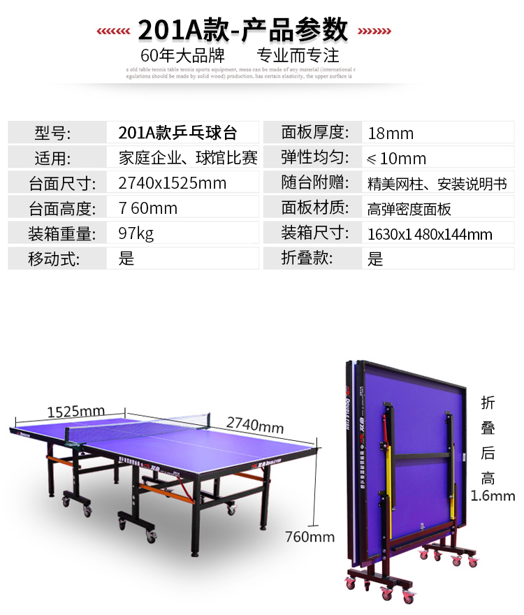• 型號:201A乒乓球桌