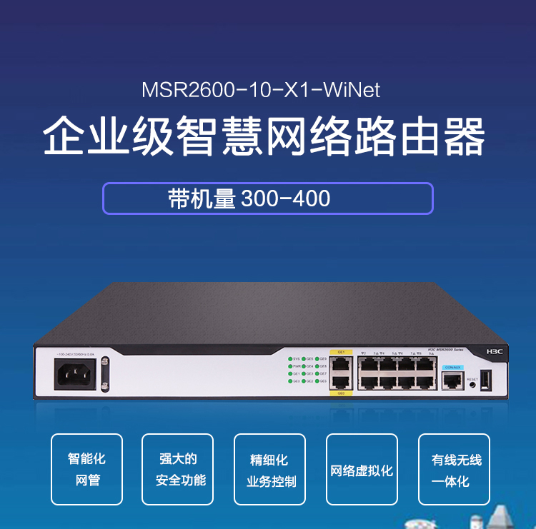 自營華三(H3C)MSR2600-10-X1-WiNet 多WAN口千兆智能網(wǎng)管企業(yè)級VPN路由器 帶機(jī)量300-400