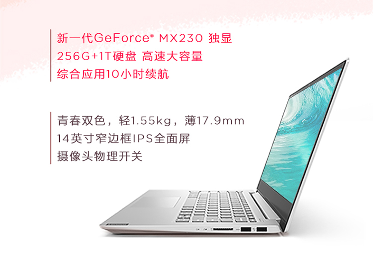 商品名稱:聯(lián)想(Lenovo)小新14英寸 英特爾酷睿i5 輕薄窄邊框筆記本電腦(I5-8265U 8G 1TB+256G PCIE MX230 IPS)仙女粉