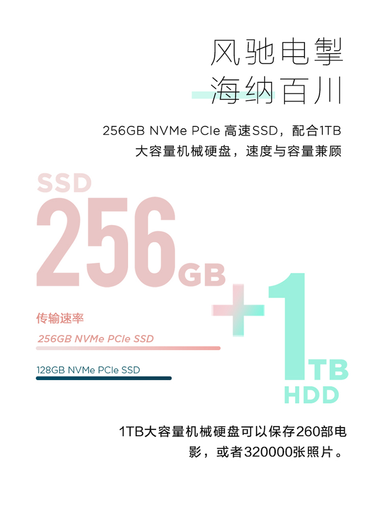 • 硬盤容量:256GB SSD+1TB HDD
