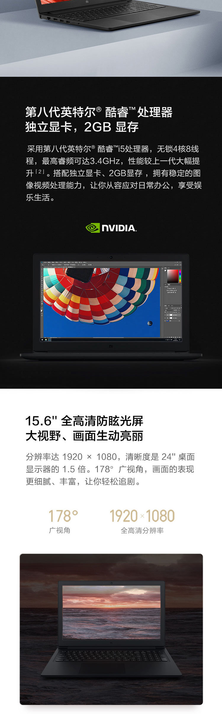 商品名稱:小米 (MI)Ruby 2019款 15.6英寸金屬輕薄筆記本電腦(第八代英特爾酷睿i5-8250U 8G 256G SSD 2G GDDR5獨(dú)顯 FHD 全鍵盤 Office Win10) 深空灰