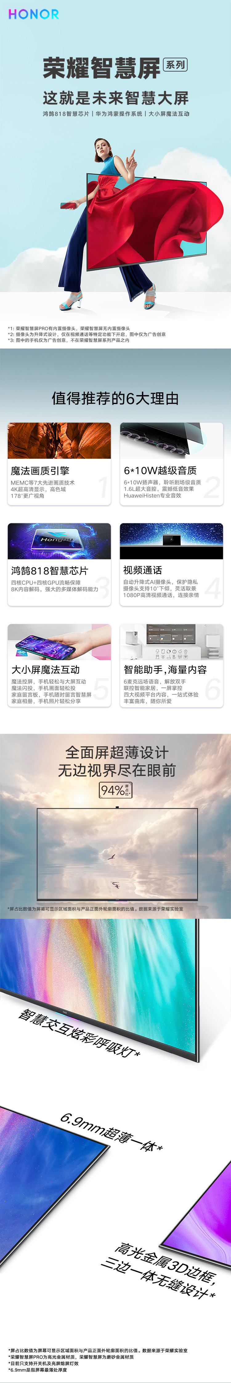 自營(yíng)榮耀智慧屏Pro 55英寸 2G+32G 視頻通話 遠(yuǎn)場(chǎng)語(yǔ)音 4K超高清 人工智能液晶電視 華為超薄金屬全面屏OSCA-550
