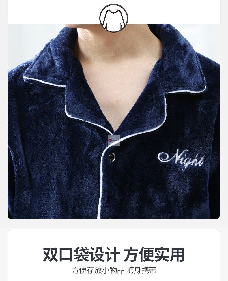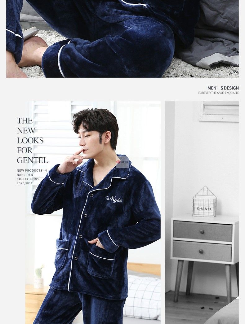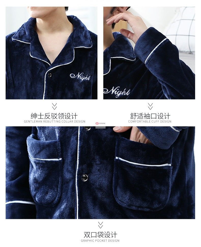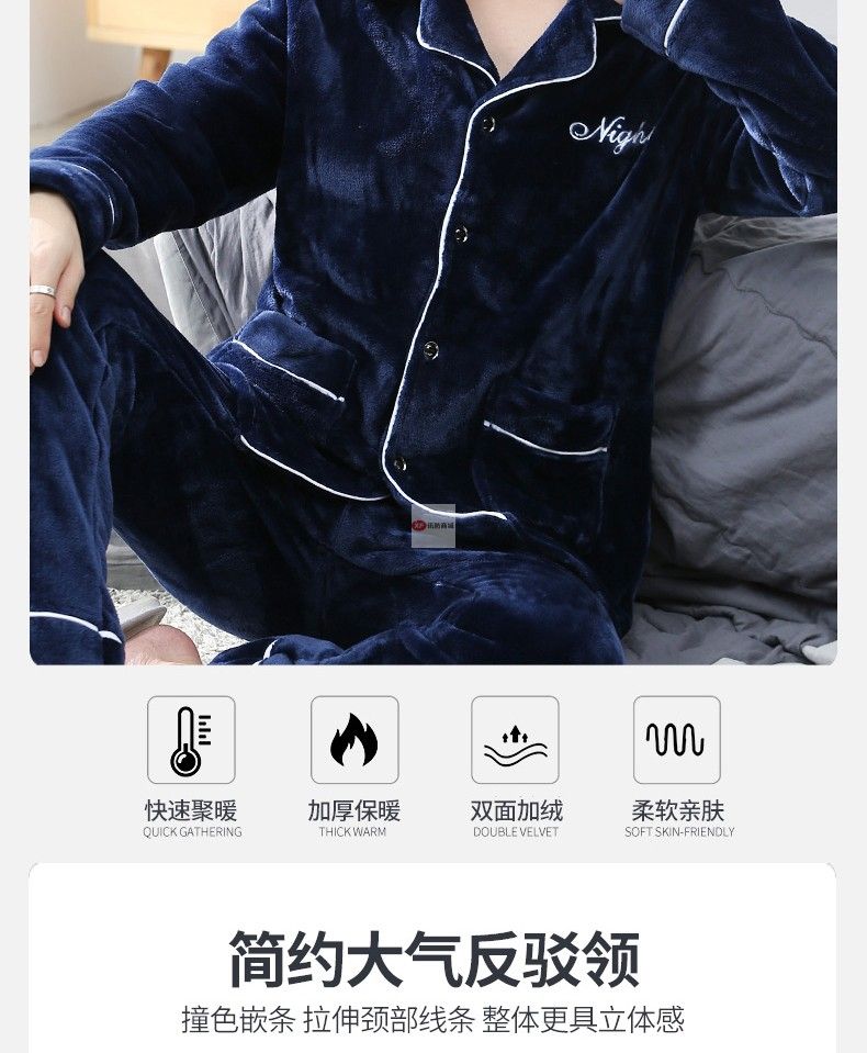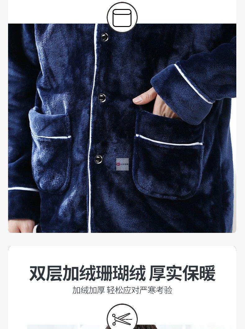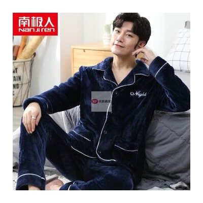 商品名稱:南極人睡衣男秋冬家居服套裝可外穿法蘭絨保暖加厚加絨珊瑚絨睡衣套裝 藏青 XXL