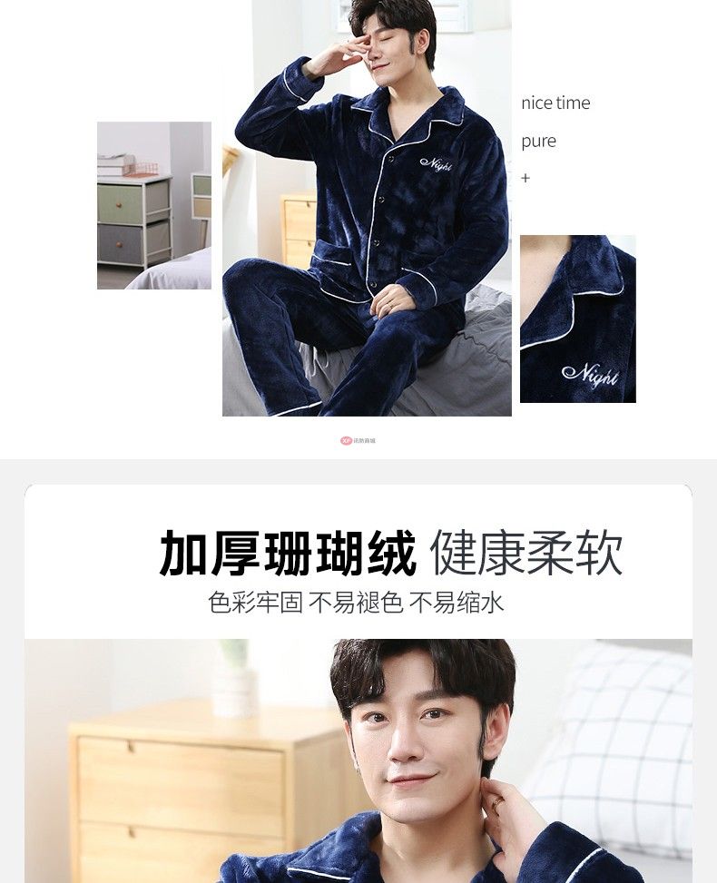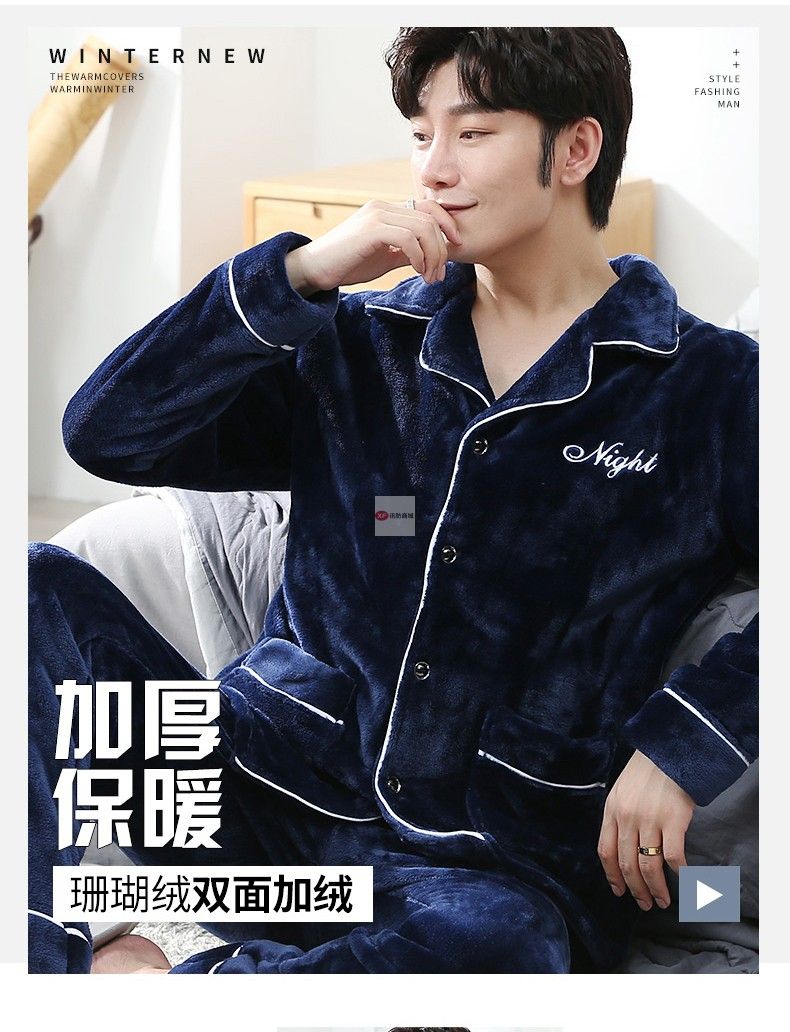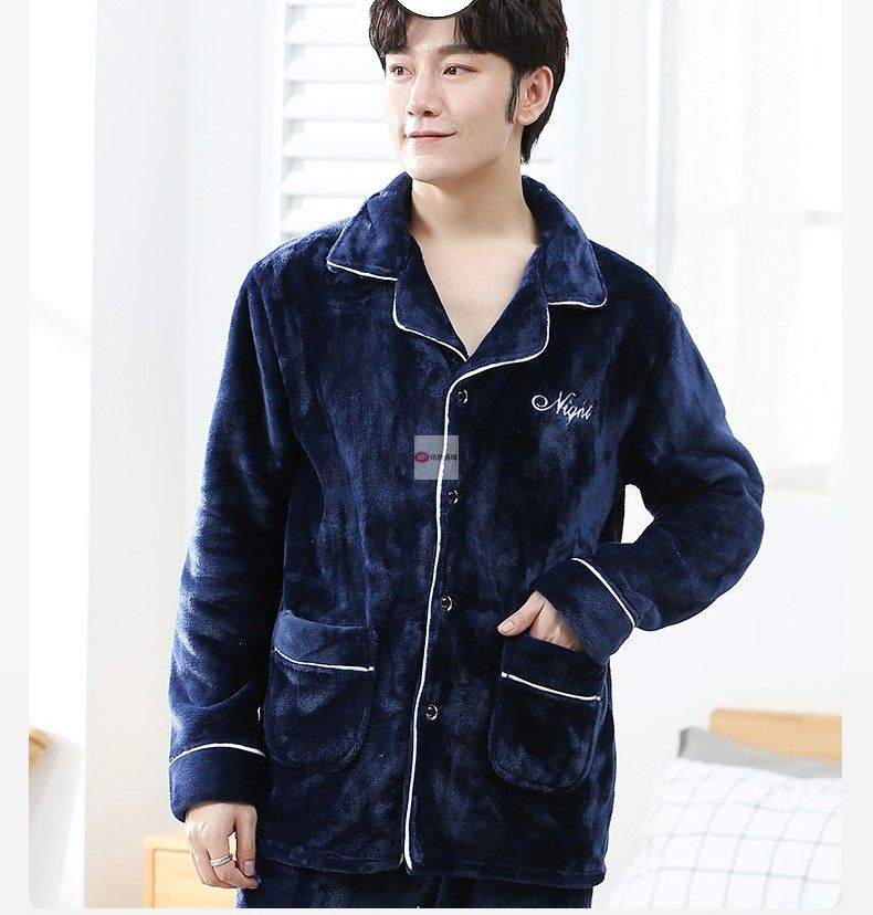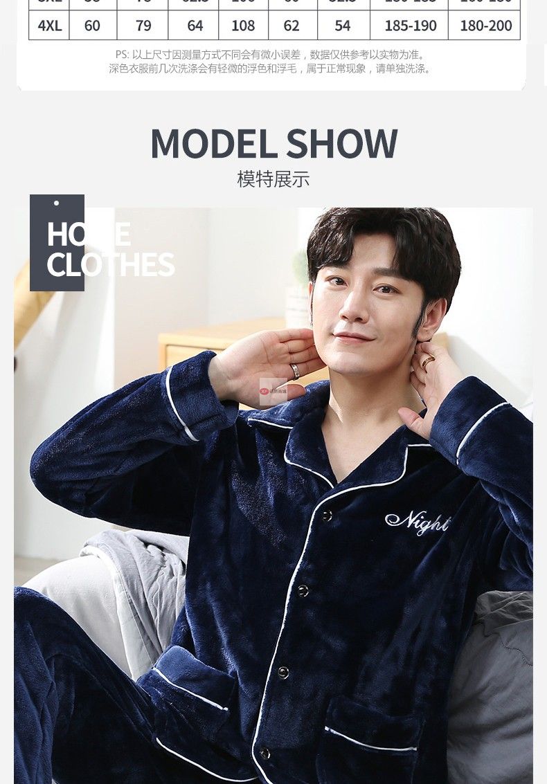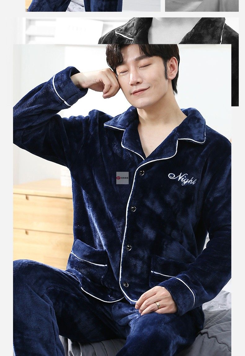 商品名稱:南極人睡衣男秋冬家居服套裝可外穿法蘭絨保暖加厚加絨珊瑚絨睡衣套裝 藏青 XXL