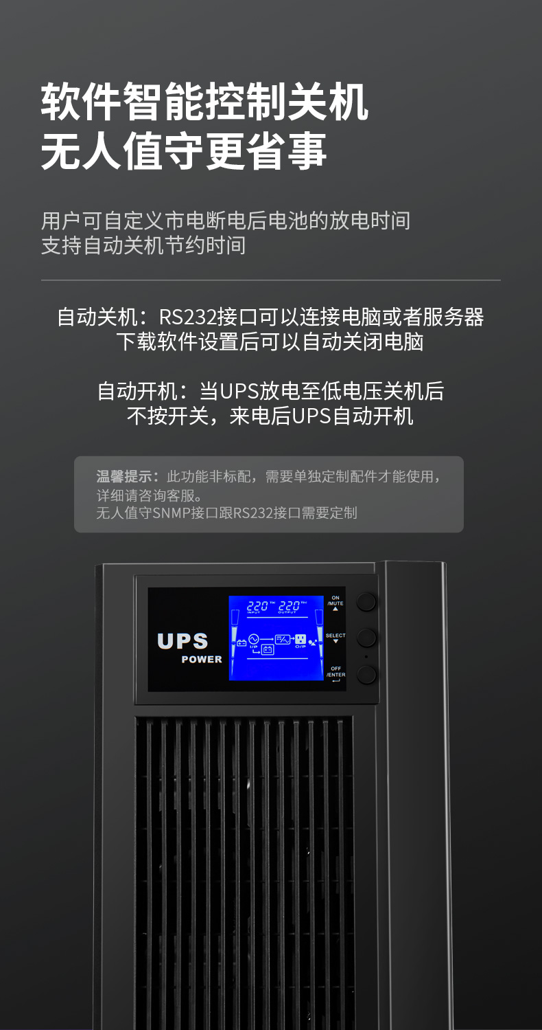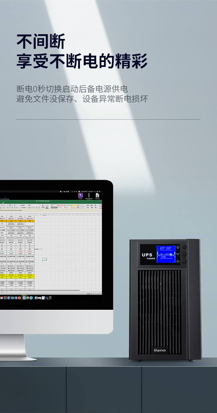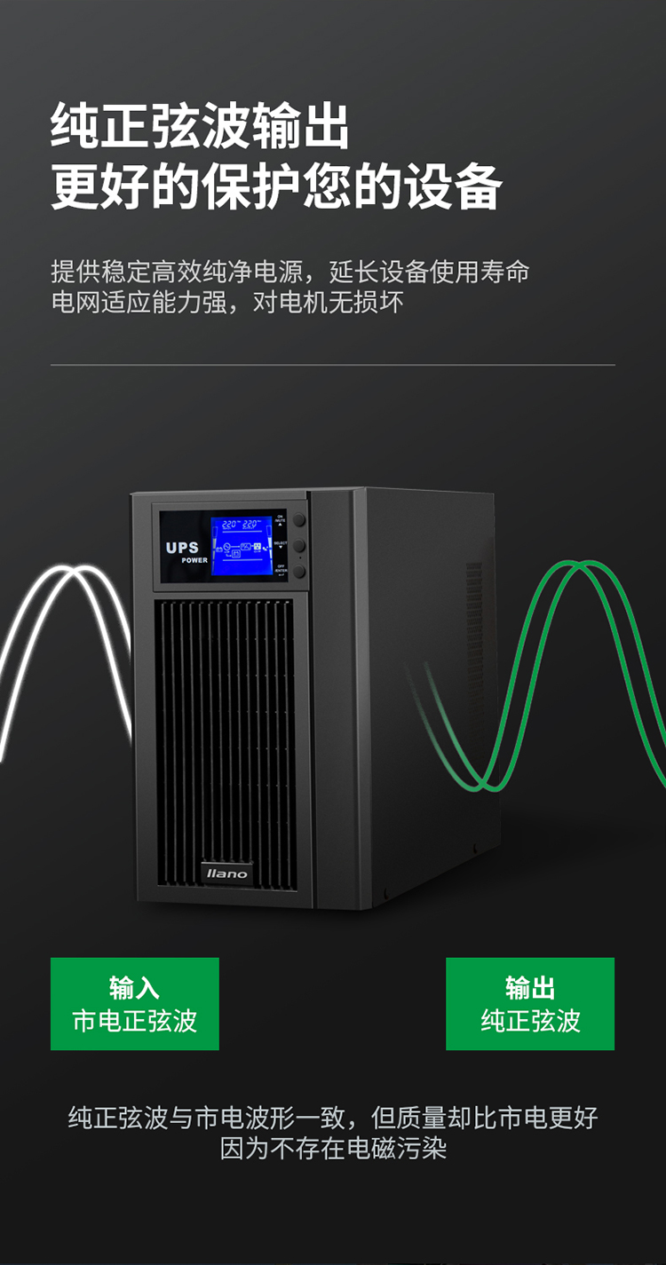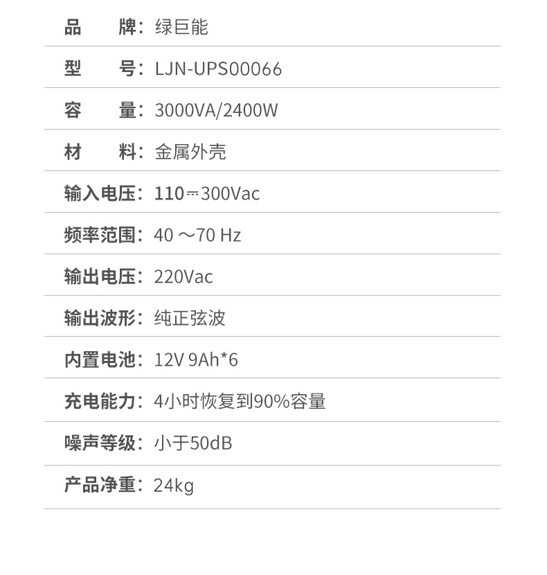 商品名稱(chēng):綠巨能(llano)UPS電源家用 不間斷電源 服務(wù)器辦公電腦后備電源 金屬外殼 在線(xiàn)式 3KVA/2400W 9AH電池*6