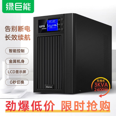自營(yíng)綠巨能(llano)UPS電源家用 不間斷電源 服務(wù)器辦公電腦后備電源 金屬外殼 在線(xiàn)式 3KVA/2400W 9AH電池*6