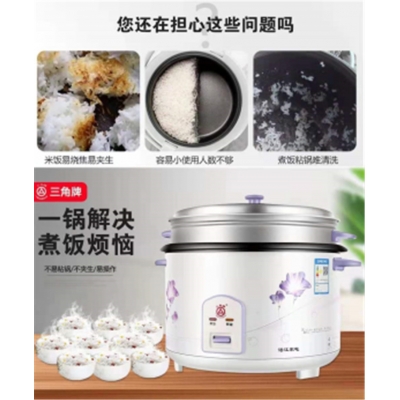 自營(yíng)三角牌 電飯鍋 HY-125A 18L 不銹鋼內(nèi)膽 機(jī)械大容量 2500W 帶蒸籠 白色