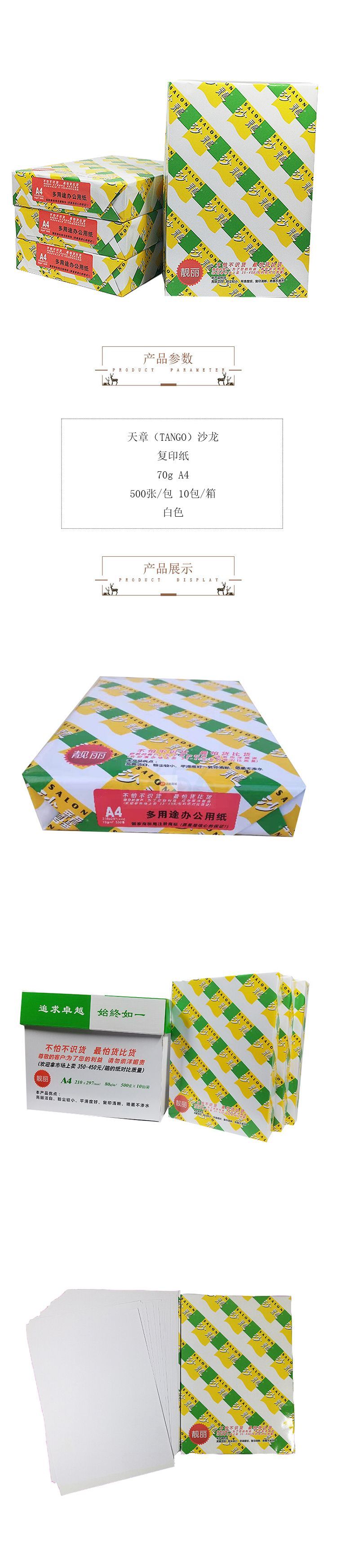 商品名稱:天章(TANGO)沙龍復(fù)印紙 70g A4 500張/包 10包/箱 白色