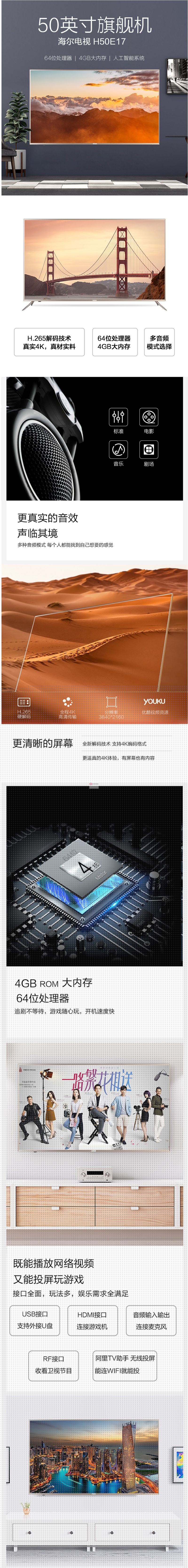 商品名稱:海爾 H50E17 電視機(jī) 50英寸 3840*2160 分辨率