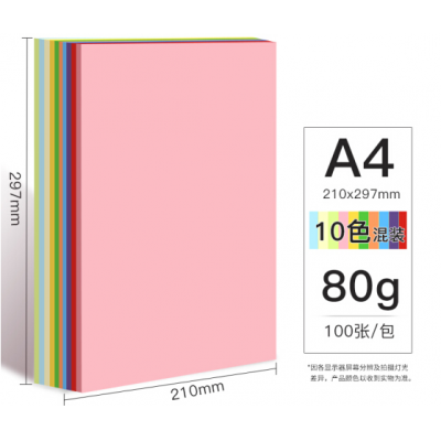 商品名稱(chēng):天章(TANGO)新綠天章A4彩紙十色混色 彩色打印紙復(fù)印紙 彩色卡紙非硬 彩色紙兒童手工折紙剪紙 混色80g100張