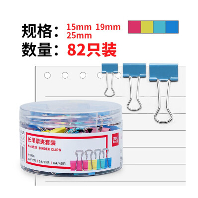 自營(yíng)得力(deli)82只組合裝彩色長(zhǎng)尾夾/燕尾夾/票夾(25mm*12只+19mm*25只+15mm*45只) 辦公用品 8521