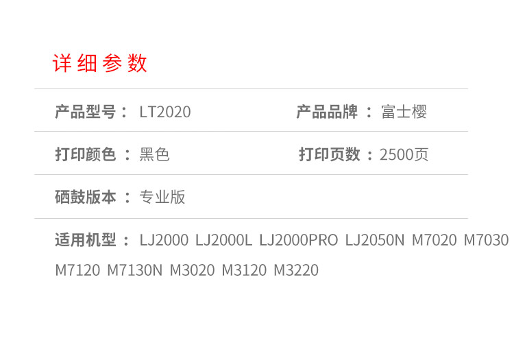 商品名稱:富士櫻(FUSICA)LT2020黑色粉盒 適用聯(lián)想LJ2000/L/PRO LJ2050N M7020 M7030 M7120 M7130N M3020 M3120 M3220