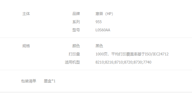 商品名稱: 惠普955原裝 黑色墨盒