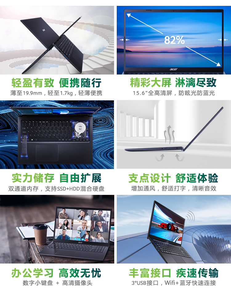 商品名稱(chēng):宏碁(Acer)墨舞EX215 15.6英寸輕薄大屏辦公筆記本(英特爾四核N5100 8G 256GSSD 全高清防眩光霧面屏 Win11)