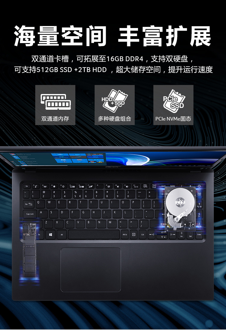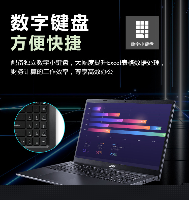 自營(yíng)宏碁(Acer)墨舞EX215 15.6英寸輕薄大屏辦公筆記本(英特爾四核N5100 8G 256GSSD 全高清防眩光霧面屏 Win11)