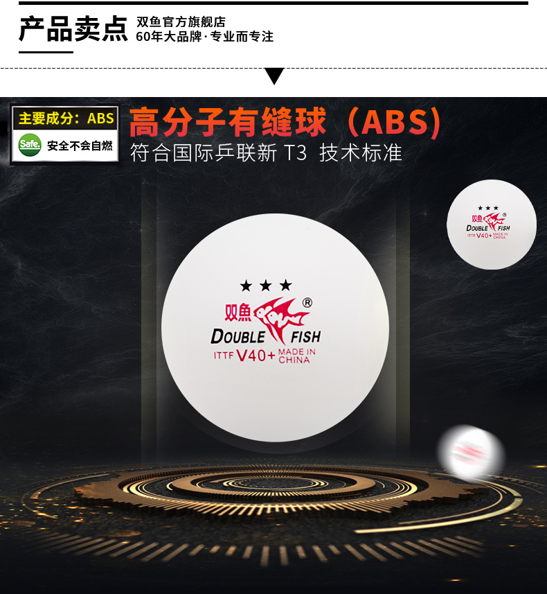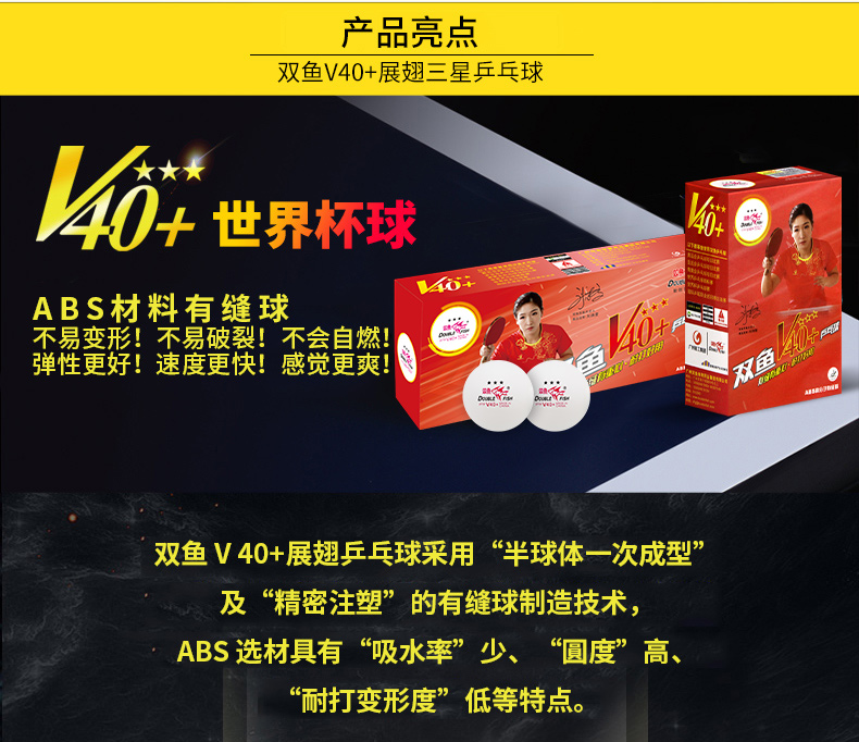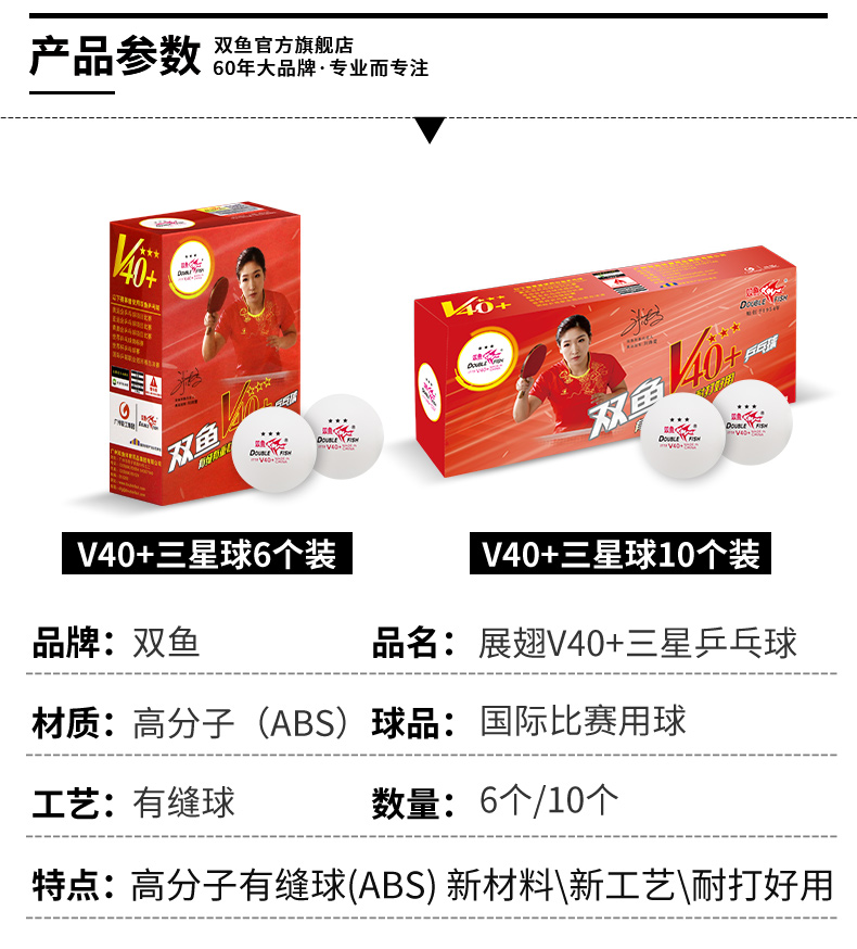 • 型號(hào):雙魚V40+展翅三星乒乓球