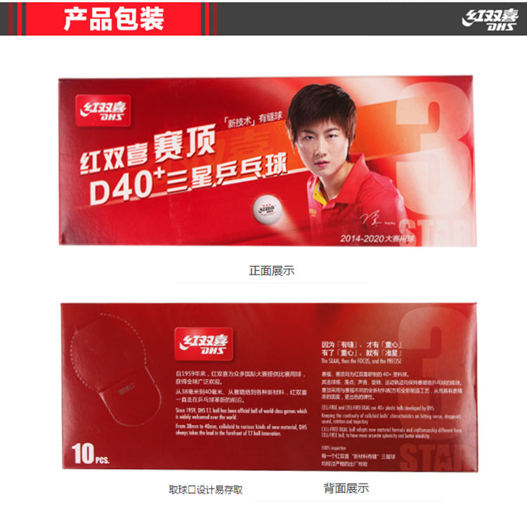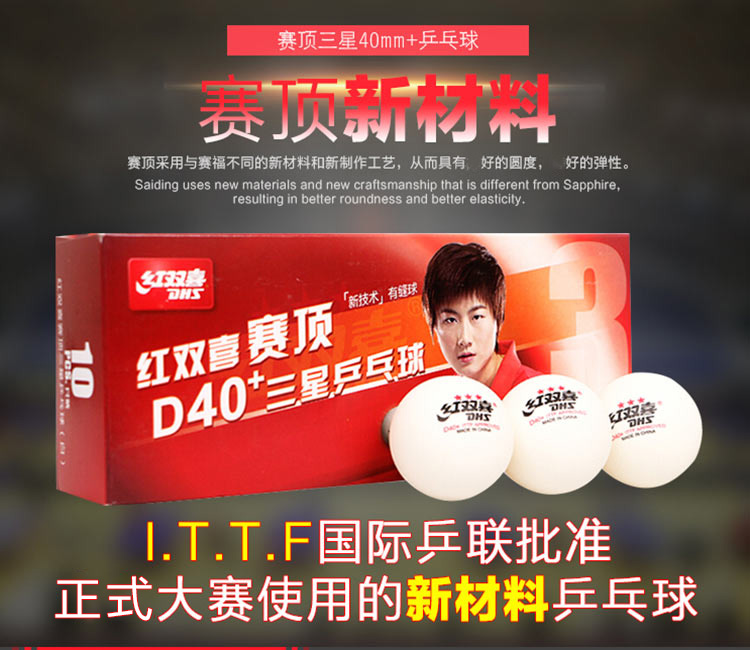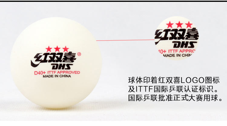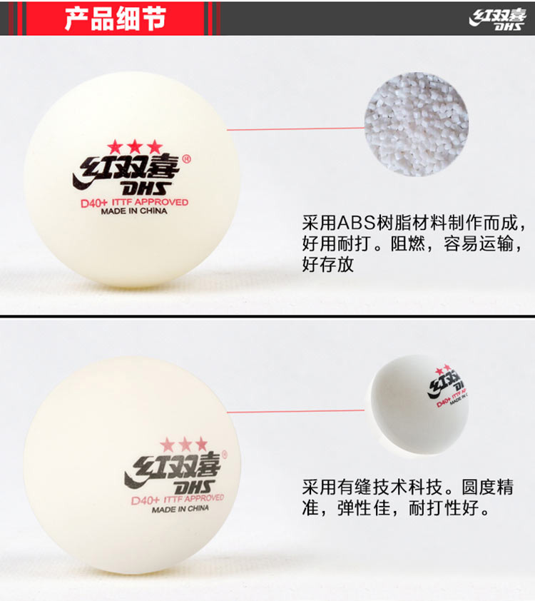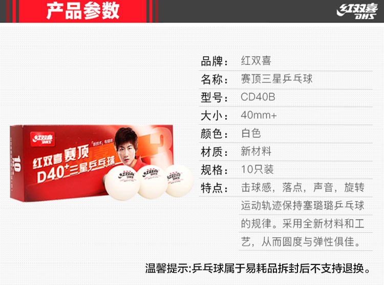 商品名稱:紅雙喜乒乓球三星賽頂3星比賽球 白色 10/個(gè)/盒
