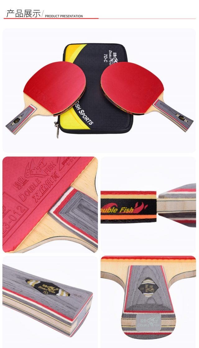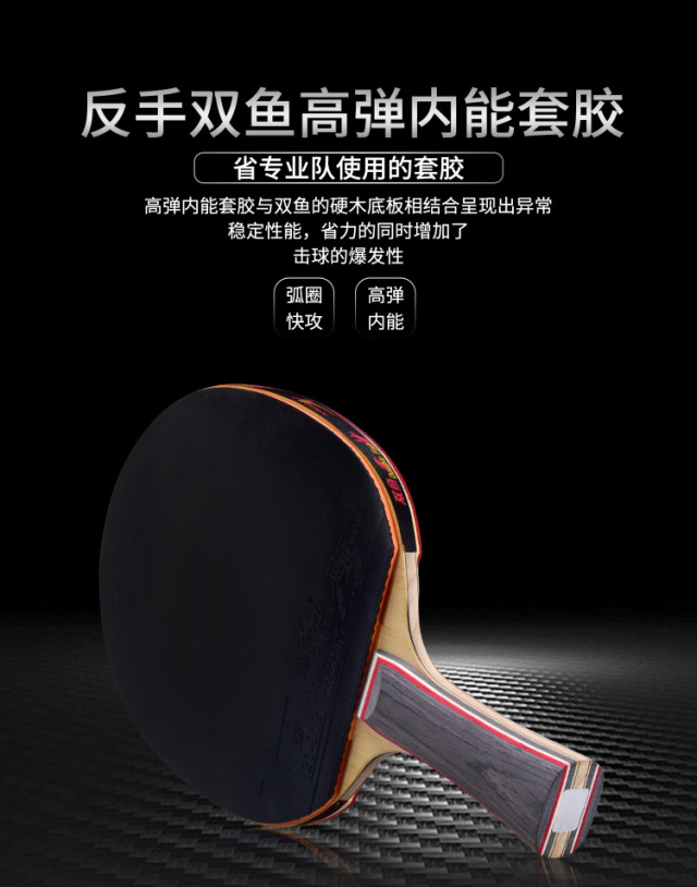 自營雙魚7星碳素乒乓球球拍 橫拍單只長柄 7D-C
