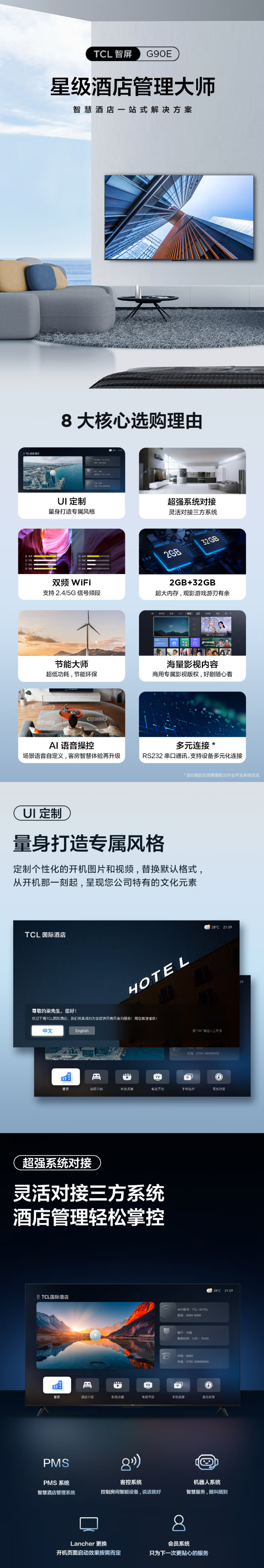 商品名稱:TCL 50G90E 50英寸 智慧酒店4KHDR超高清電視