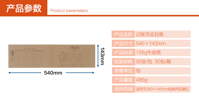商品名稱:浩立信電腦記帳憑證封面540*143mm50張/包 大號(hào)憑證封面(適用240*140MM憑證)0021